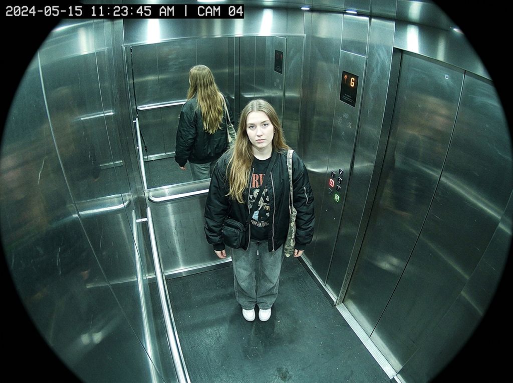 Девушка в лифте в стиле камеры наблюдения: фото нейросети Freepik / Google Nano Banana 2