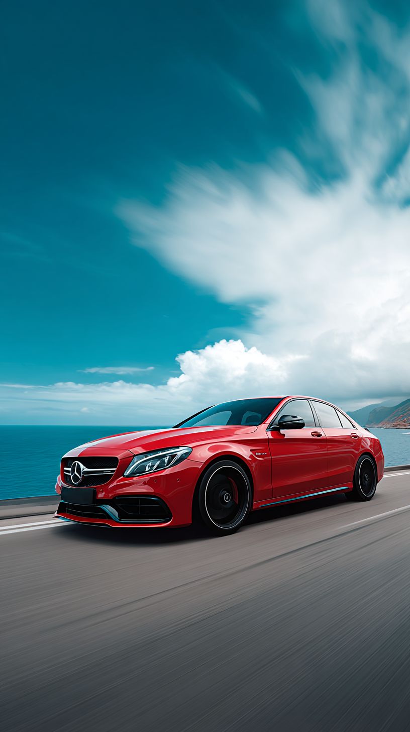 Для примера можно использовать следующую формулировку: Realistic image of a red luxury car on a road near the blue sea, designed to express elegance, power and adrenaline, with strong persuasive atmosphere highlighting prestige, beauty and desire for action.